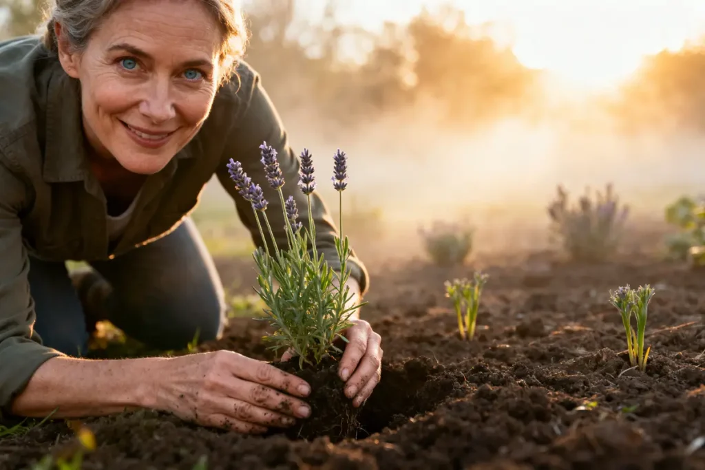 Wenn Sie Lavendel bis spätestens 31. März pflanzen, kann er vor der Blüte im Juni kräftig einwurzeln. Achten Sie darauf, ihn nicht zu tief zu setzen.